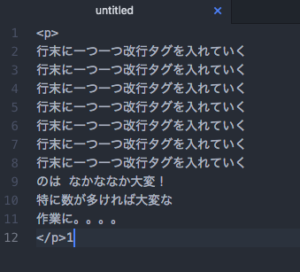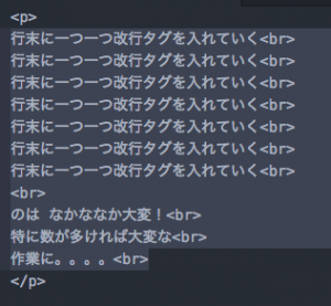 行末に一つ一つ改行タグを入れていく